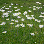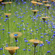 L’espace expérimental a été une installation « sauvage » au fond du parc de Versailles une prairie non fauchée au mois de février sans grande esthétique au point de souhaiter ci-arrêter. La mise en place de coquelicots de grillage interpelle l’observateur et le surprend. Donner à voir une profusion de fleurs arrête le temps, suscite l’intérêt et la volonté d’un autre regard. Ainsi la nouvelle esthétique du lieu retient l’attention de l’observateur.